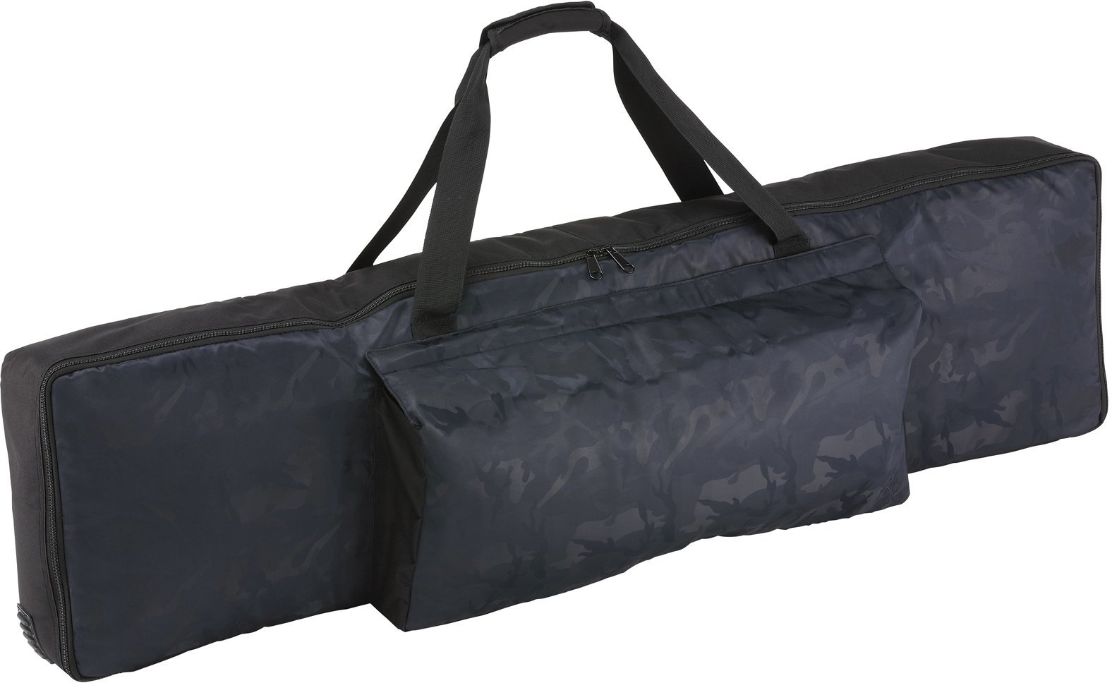 Чохол має велику кишеню для аксесуарів спереду, ідеально підходить для зберігання підставки для нот або інших аксесуарів. Дизайн часто використовує синій камуфляжний матеріал спереду з чорними боками, надаючи йому характерного вигляду.
