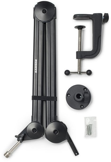 У комплекті також є 2 кріплення для монтажу стійки: одне з затискачем для закріплення на краю столу та одне для постійного монтажу.