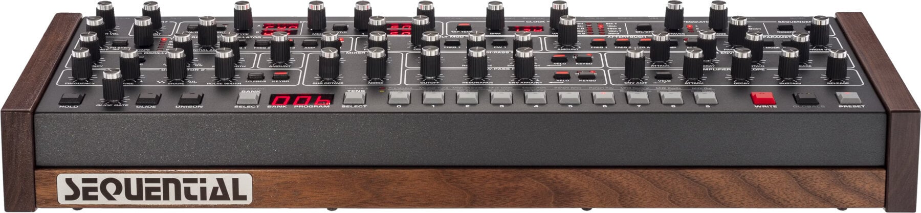 Модульний синтезатор Sequential Trigon-6 — це компактний пристрій, який поєднує в собі потужний звук та сенсорну клавіатуру Trigon-6. Він має чисту аналогову звукову доріжку, що включає дискретні осцилятори та фільтри, а також інтегрує високоякісні цифрові ефекти. Інтуїтивно зрозуміле розташування елементів управління включає повнорозмірні ручки та перемикачі, що полегшують формування звуку.