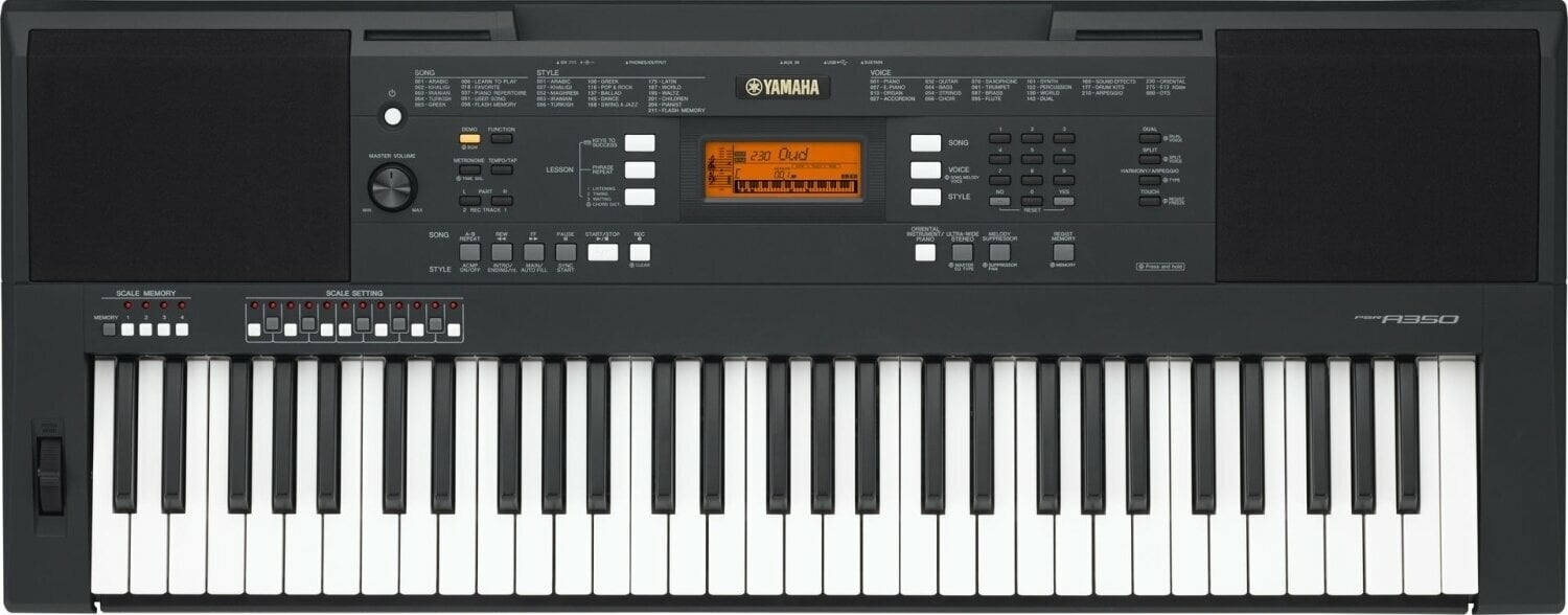 PSR-A350 пропонує широкий спектр високоякісних звуків, стилів та арпеджіаторів, включаючи реалістичний східний контент, успадкований від моделей вищого класу, таких як PSR-A2000/3000. Для виконавця доступні контенти в арабському, магрибському, халиджському, іранському, турецькому та грецькому стилях.