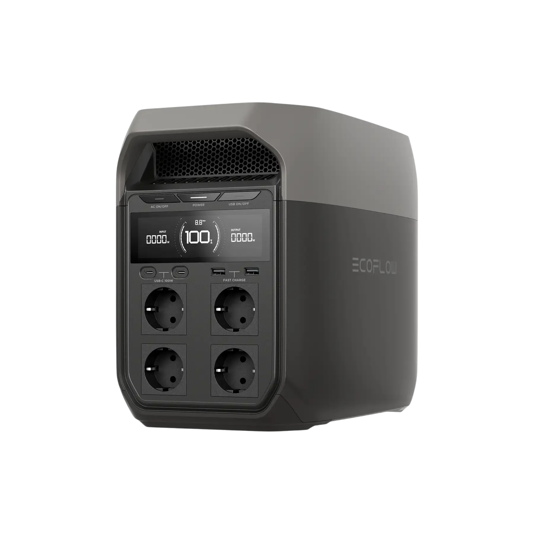 - Типи вихідних портів: 3 x AC розетки, 2 x USB-A, 1 x USB-C, 1 x DC carport
